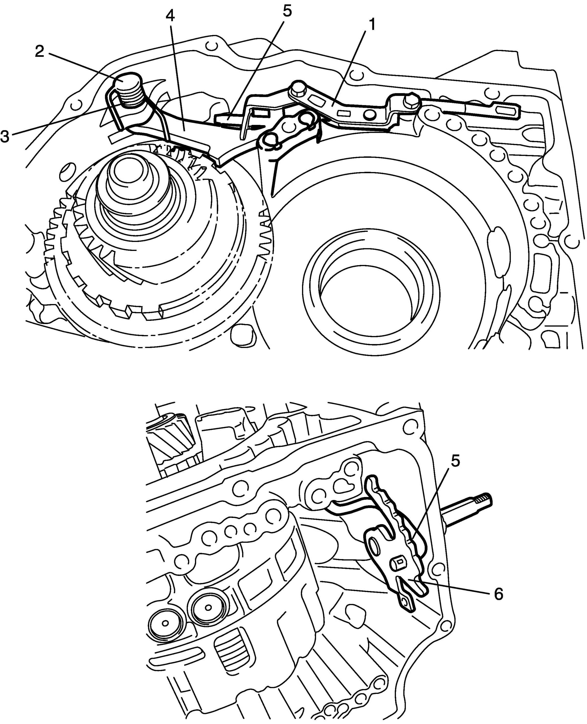 36. Remove parking lock pawl bracket and manual detent spring (1).