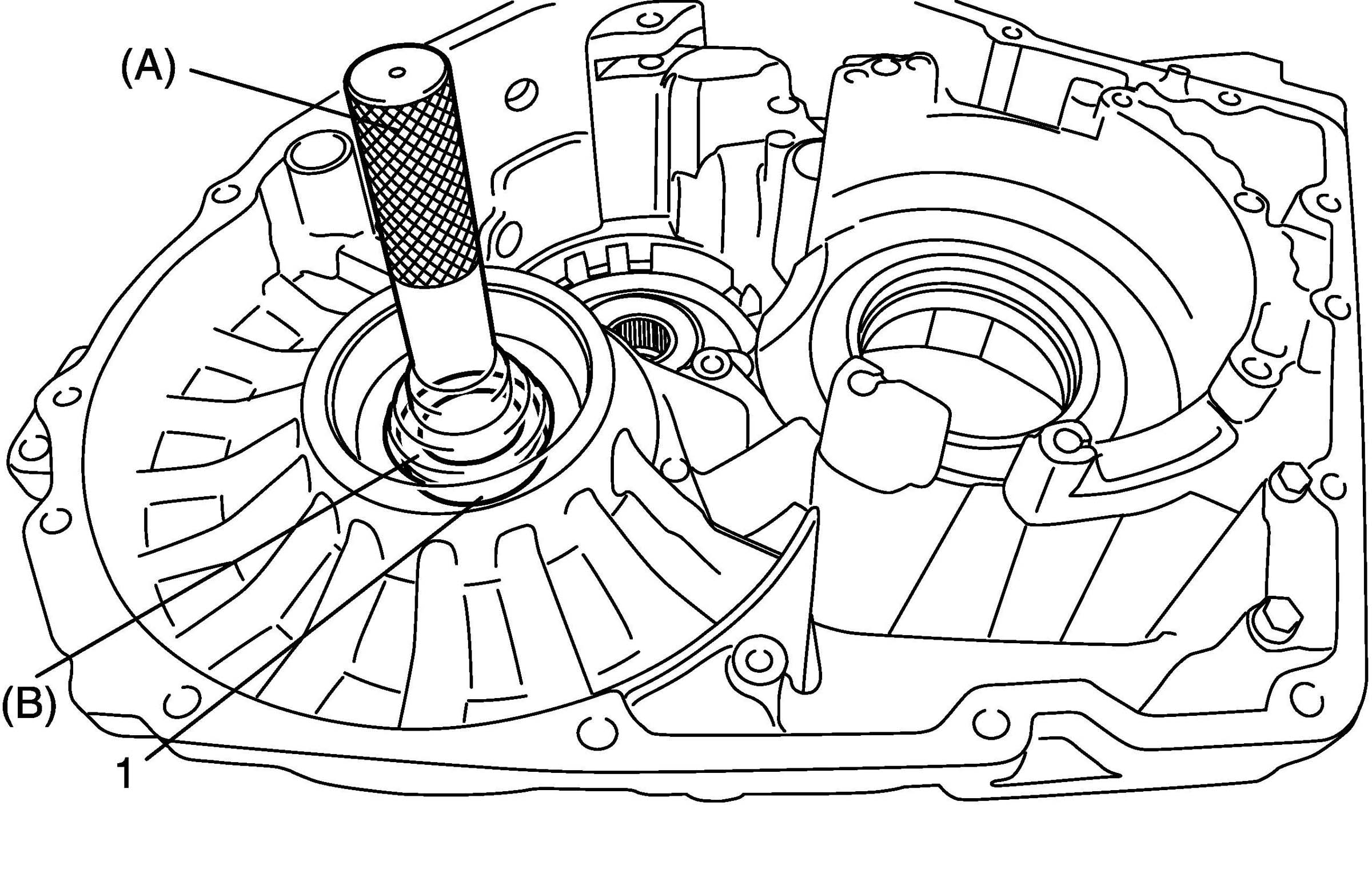 CAUTION: Remove torque converter as much straight as possible. Leaning it may cause to damage oil seal lip.