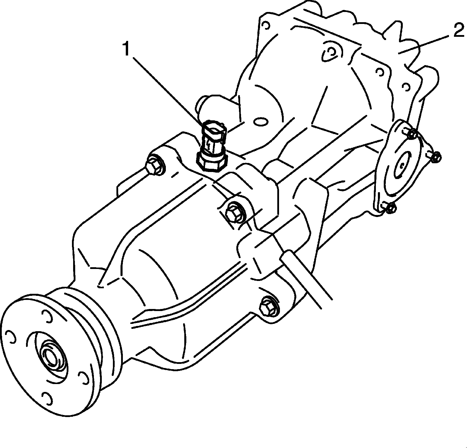 2. Remove coupling air temperature sensor (1) from rear differential (2).