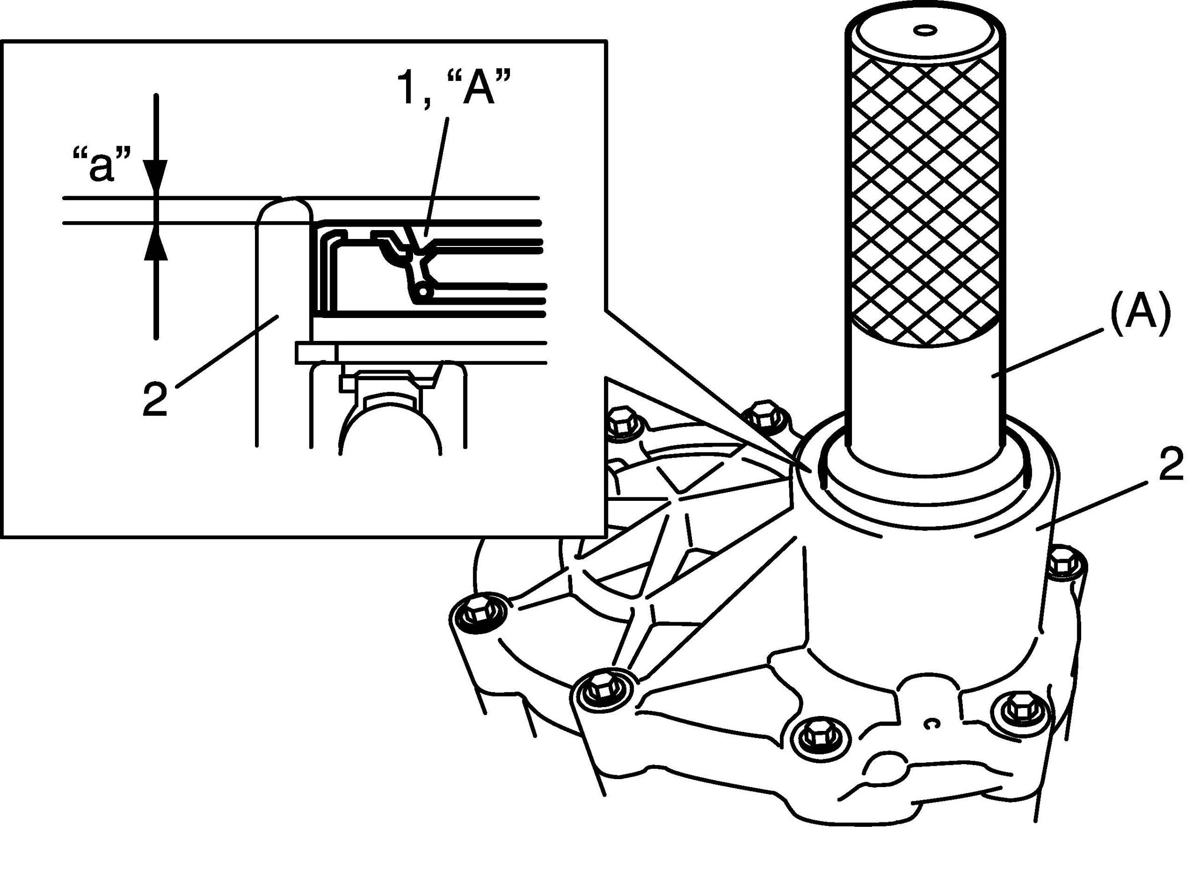 Intermediate output oil seal installing depth "a": 1.0 - 1.5 mm (0.04 - 0.06 in.)