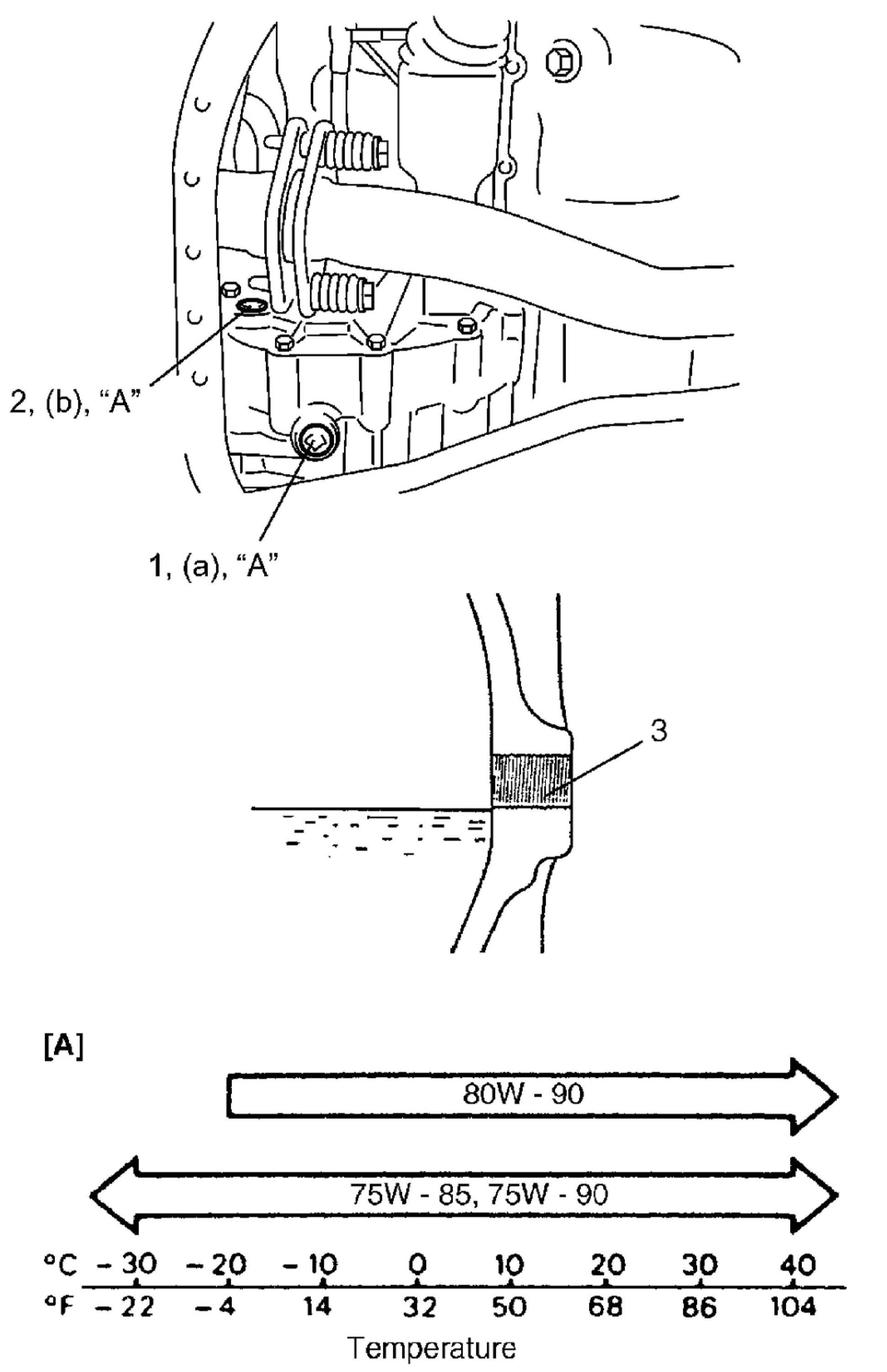 Transfer oil specification: API GL-5 (For SAE classification, refer to viscosity chart [A] in figure.)