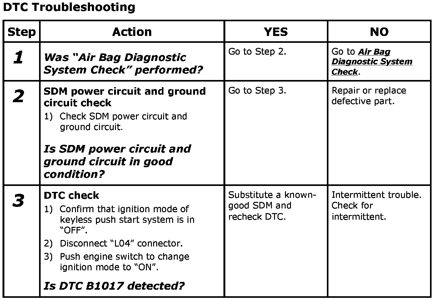 - Repeat Air Bag Diagnostic System Check Air Bag Diagnostic System Check to confirm that the trouble has been solved.