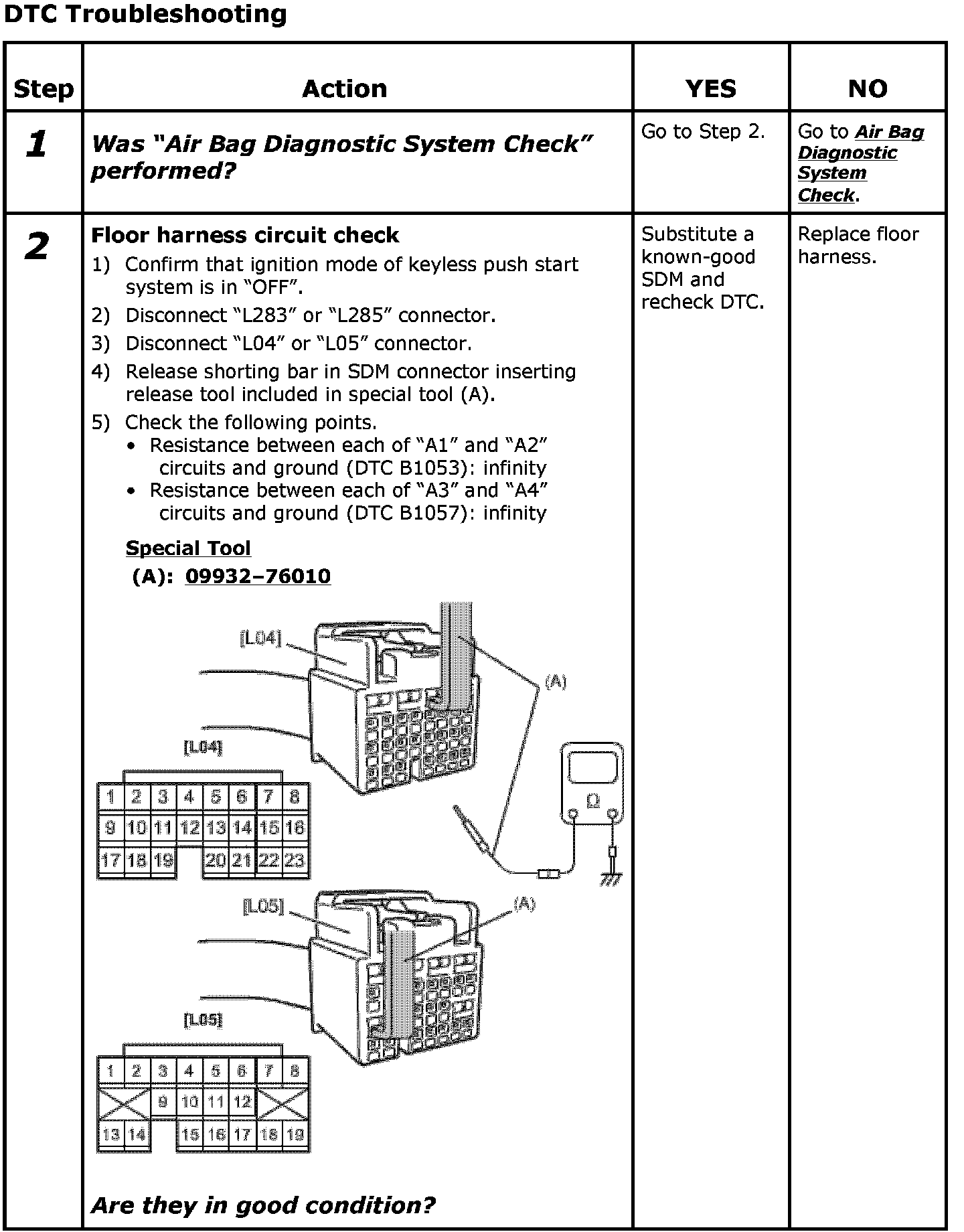 - Repeat Air Bag Diagnostic System Check Air Bag Diagnostic System Check to confirm that the trouble has been solved.