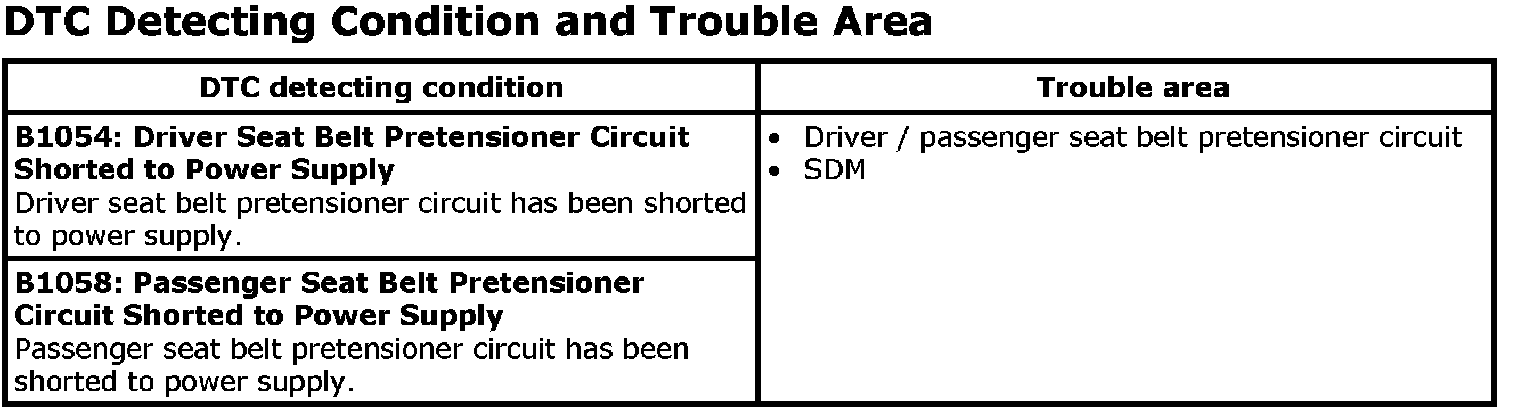 DTC B1054 / B1058DTC Detecting Condition and Trouble Area