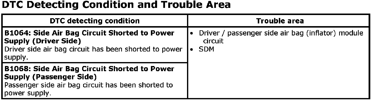 DTC B1064 / B1068DTC Detecting Condition and Trouble Area