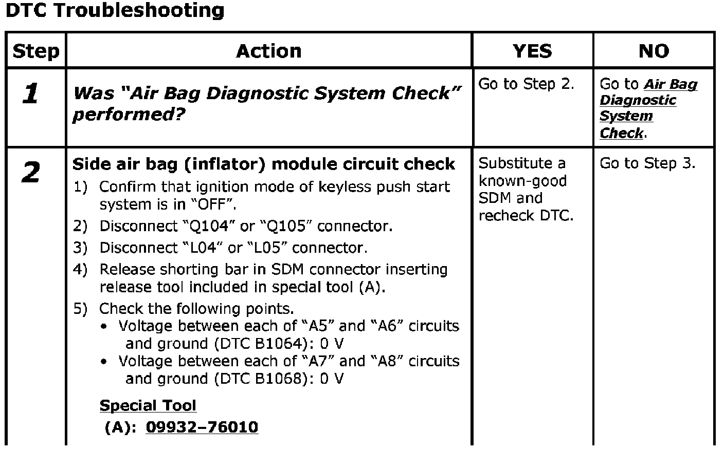 - Repeat Air Bag Diagnostic System Check Air Bag Diagnostic System Check to confirm that the trouble has been solved.