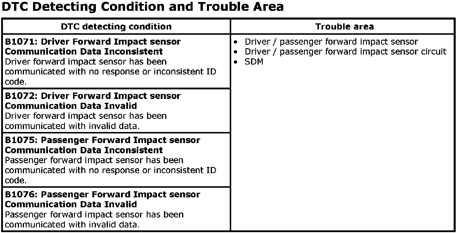 DTC B1071 / B1072 / B1075 / B1076DTC Detecting Condition and Trouble Area