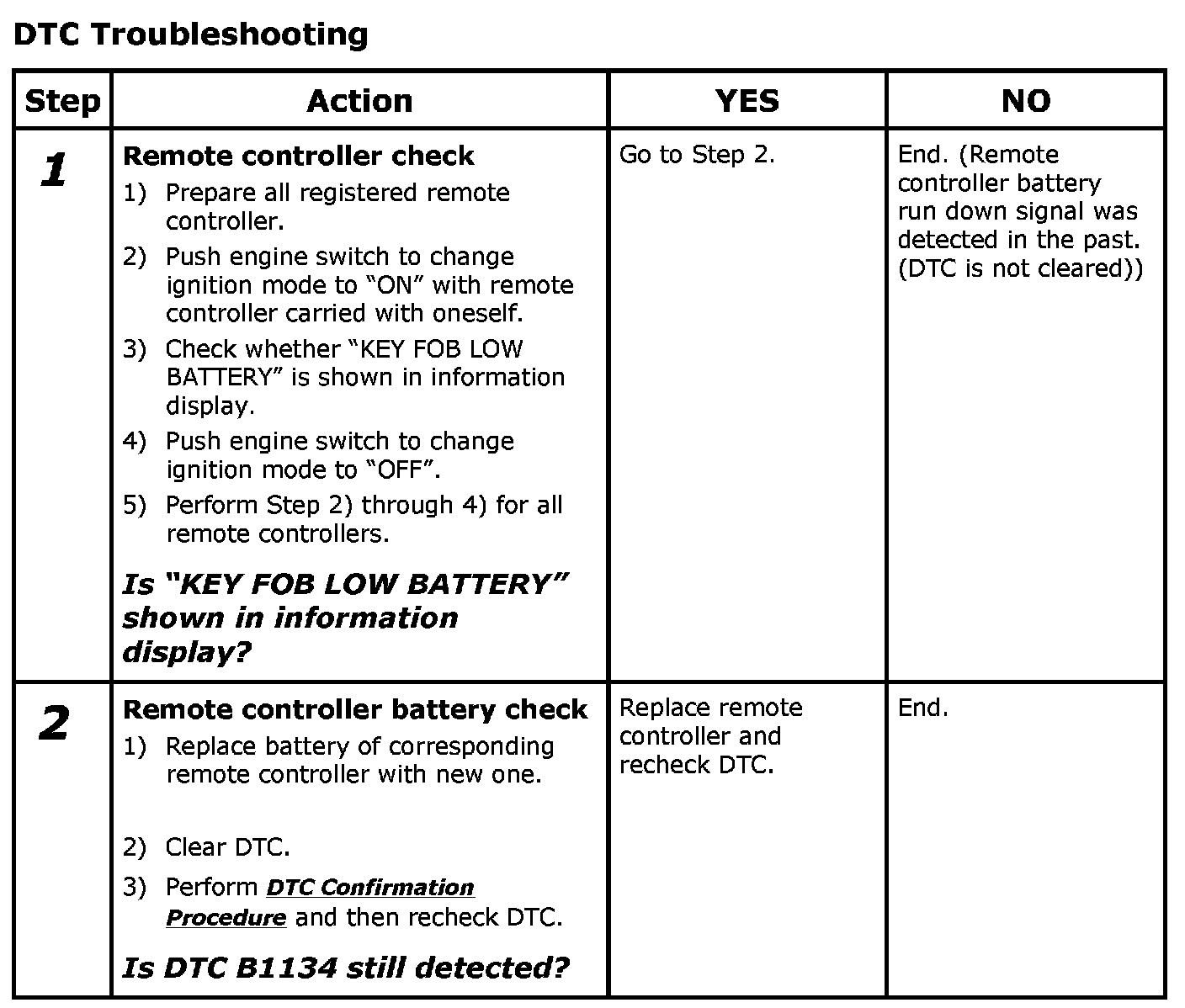 NOTE: Prepare all registered remote controllers before performing DTC confirmation procedure.
