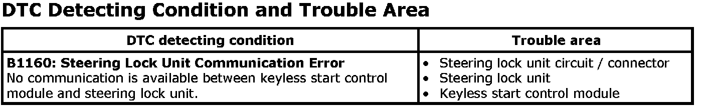 DTC B1160DTC Detecting Condition and Trouble Area