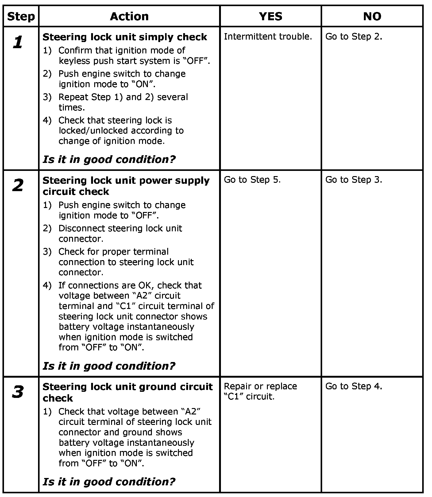 1. Confirm that ignition mode of keyless push start system is "OFF".