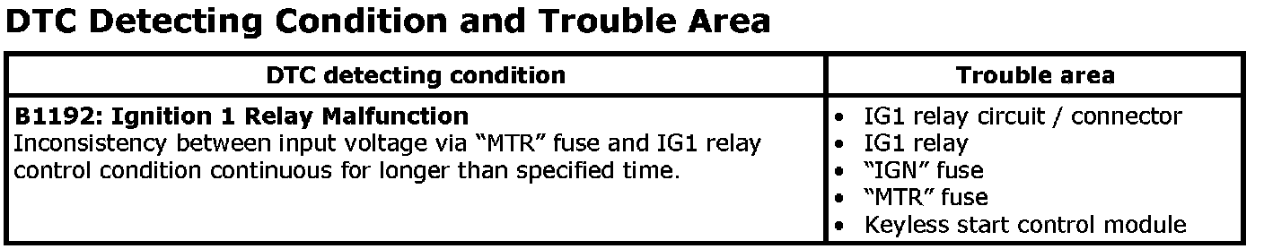 DTC B1192DTC Detecting Condition and Trouble Area