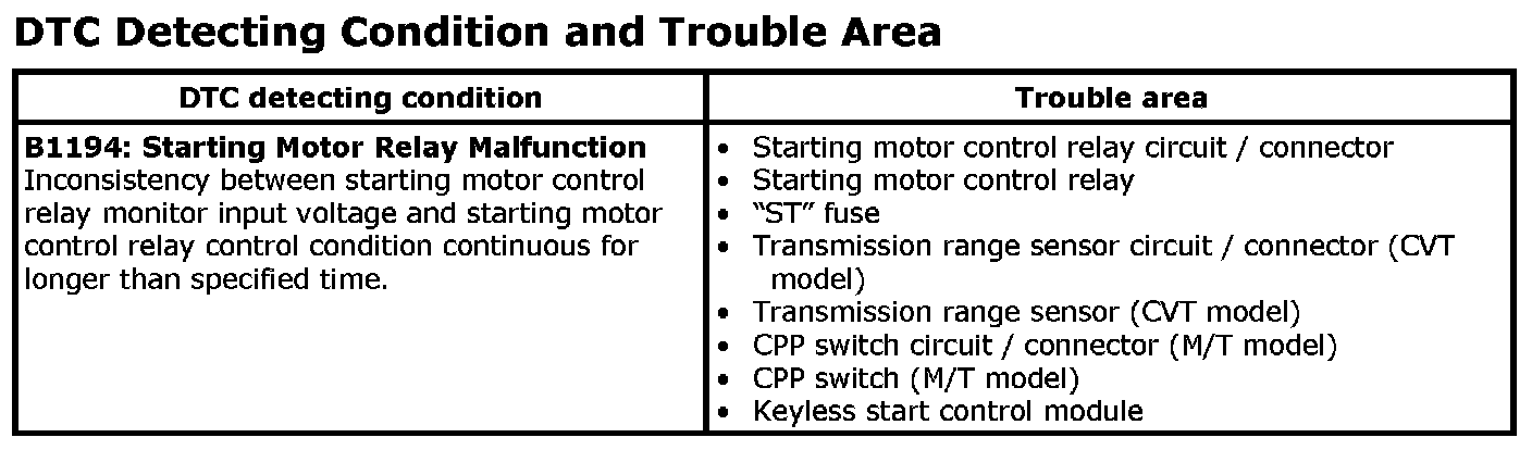DTC B1194DTC Detecting Condition and Trouble Area