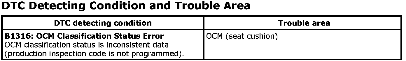 DTC B1316DTC Detecting Condition and Trouble Area