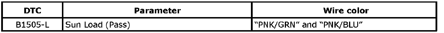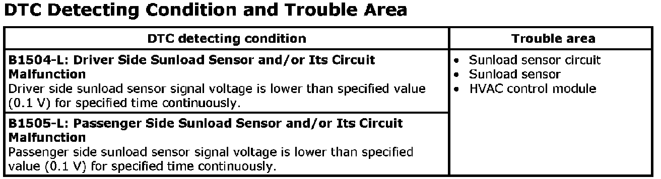 - The following flow shows "DTC B1504-L:" Driver Side Sunload Sensor and/or Its Circuit Malfunction .