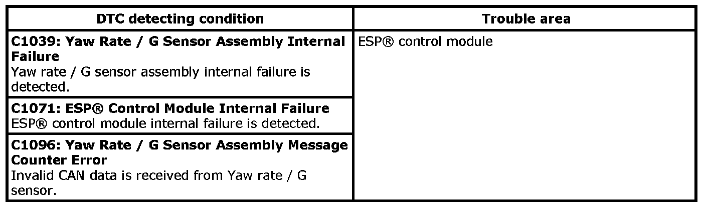 DTC C1039 / C1071 / C1096