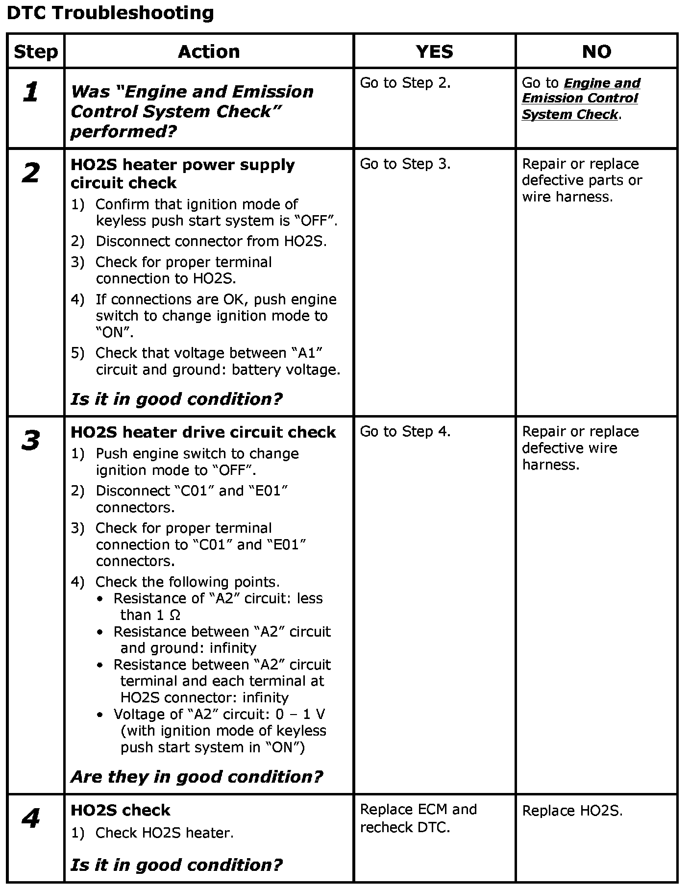 DTC P0037/P0038DTC Detecting Condition and Trouble Area