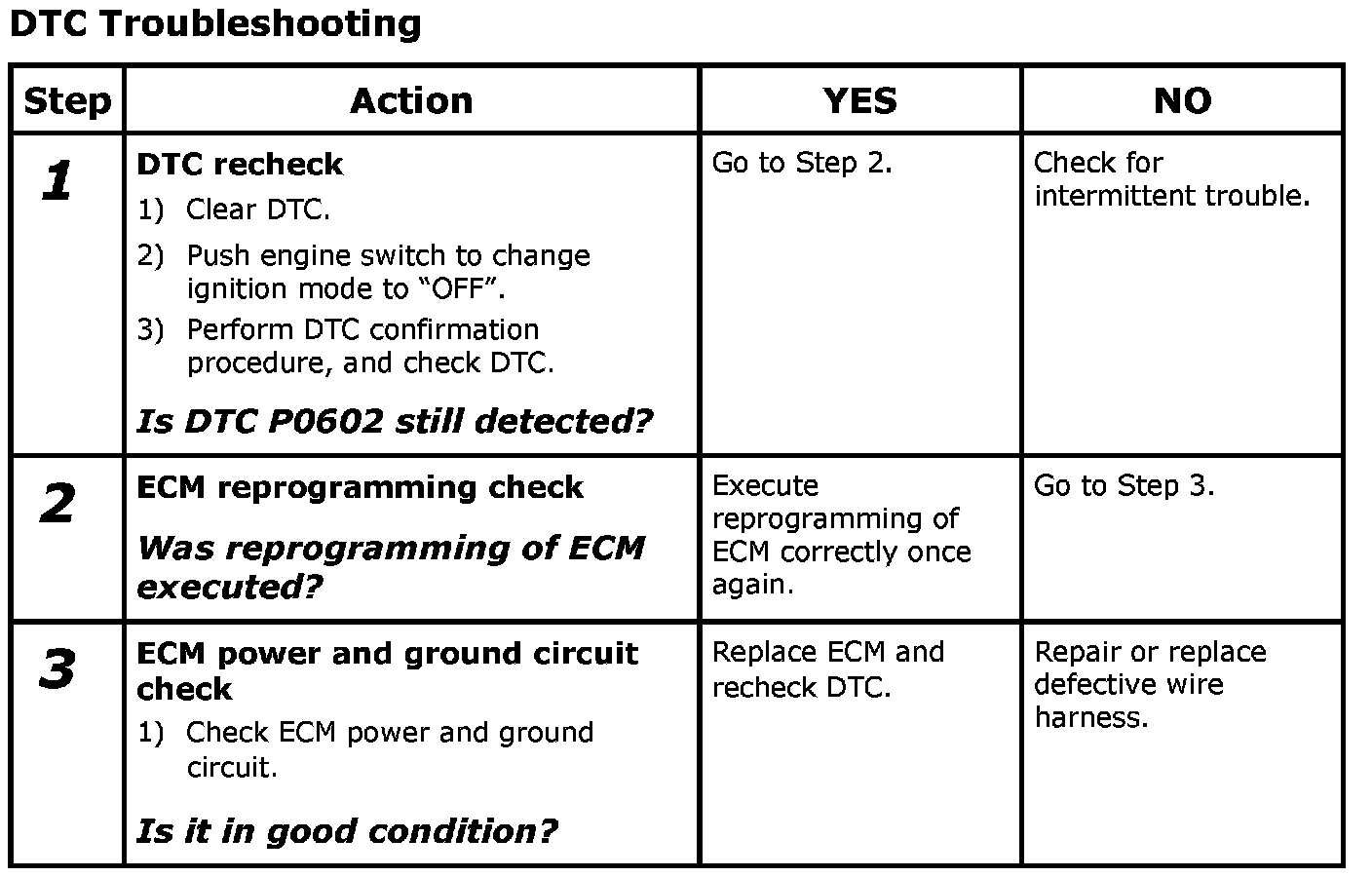 NOTE: After reprogramming of ECM is executed, if the DTC P0602 is indicated, it is possible that the reprogramming of ECM is not completed correctly.