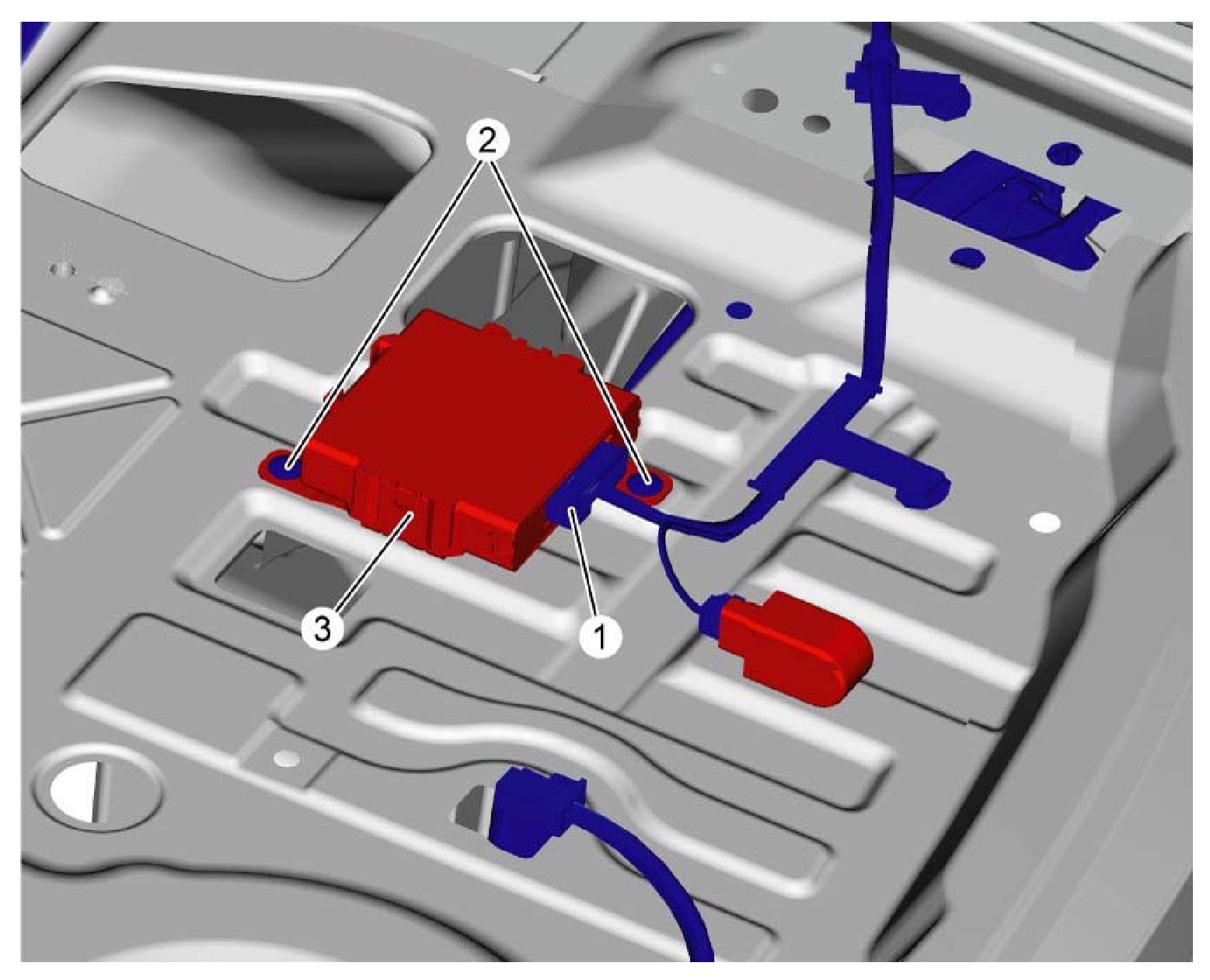 3. Remove screws (2) and remove parking sensor system control module (3).