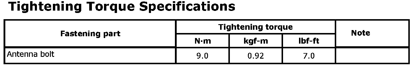 Tightening Torque SpecificationsTightening Torque Specifications: