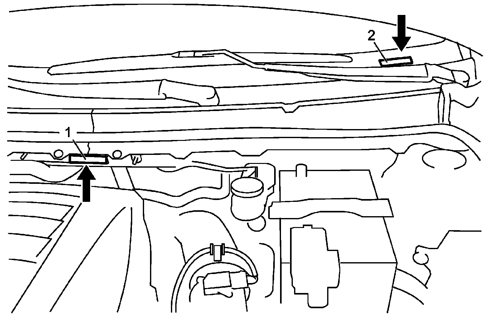 Vehicle Identification NumberThe vehicle identification number is punched on the cowl top panel (1). The vehicle identification number is also indicated on the left side of instrument panel (2) depending on the vehicle specification.
