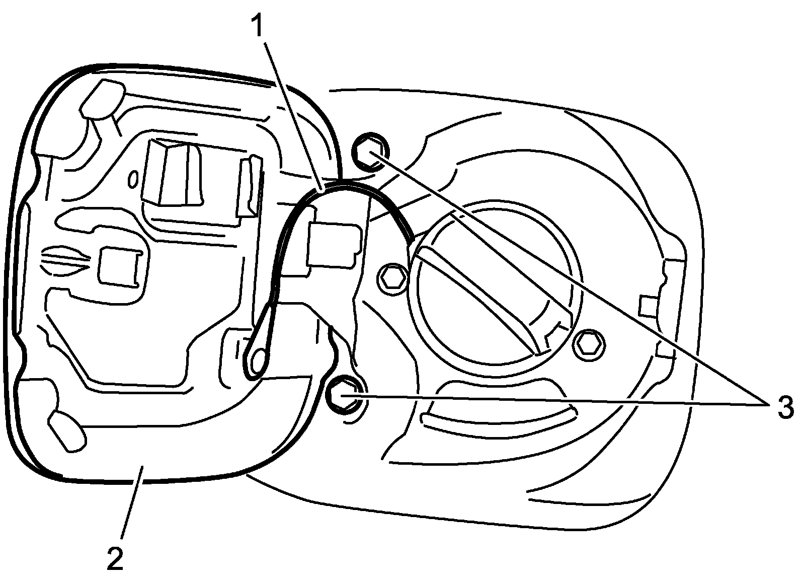 2. Remove fuel lid bolts (3) and remove fuel lid (2).