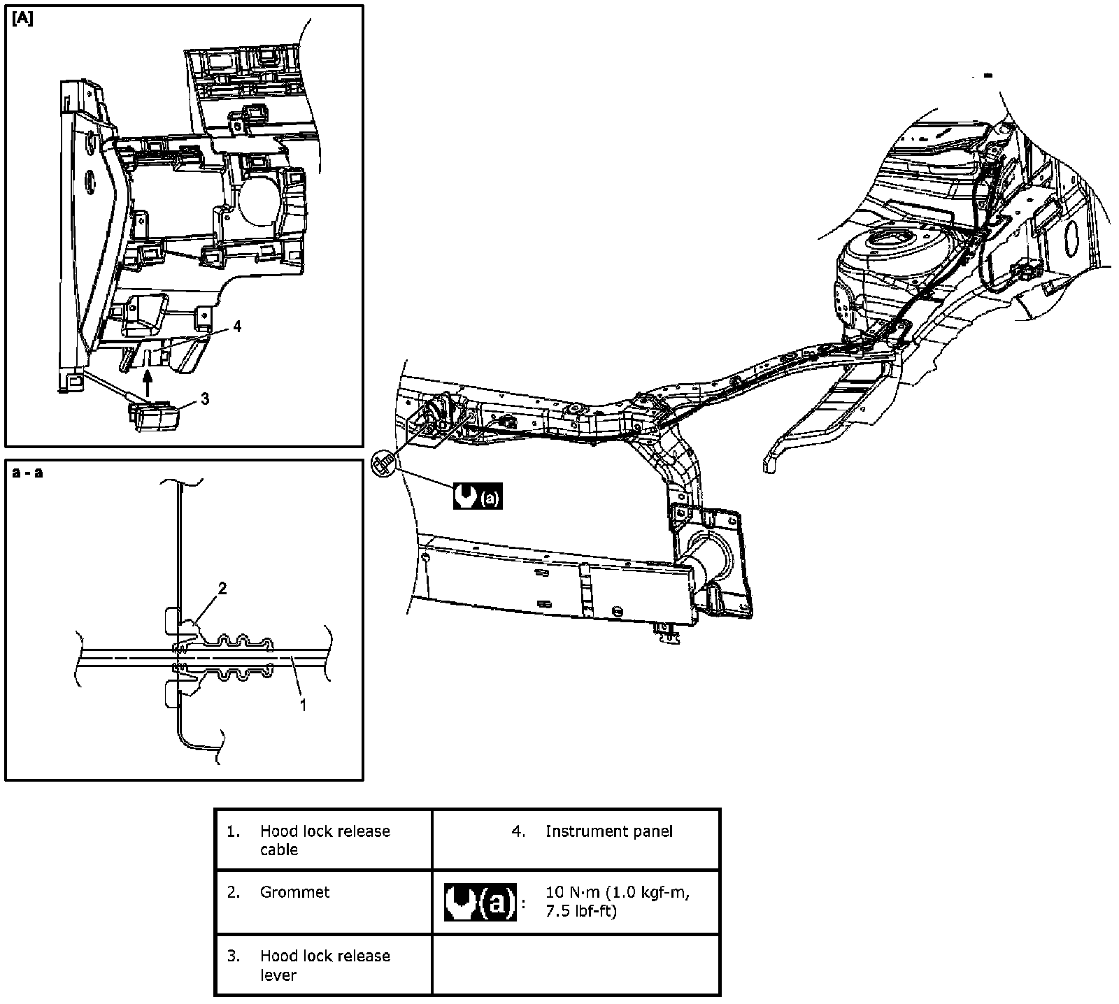 Hood Lock Release Cable Components: