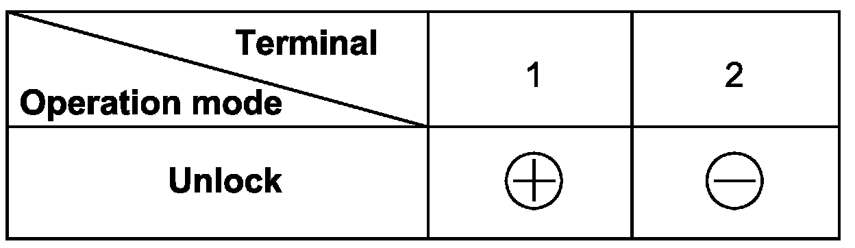 3. Check operation of motor with battery voltage applied to the following terminals of trunk lid latch assembly connector.