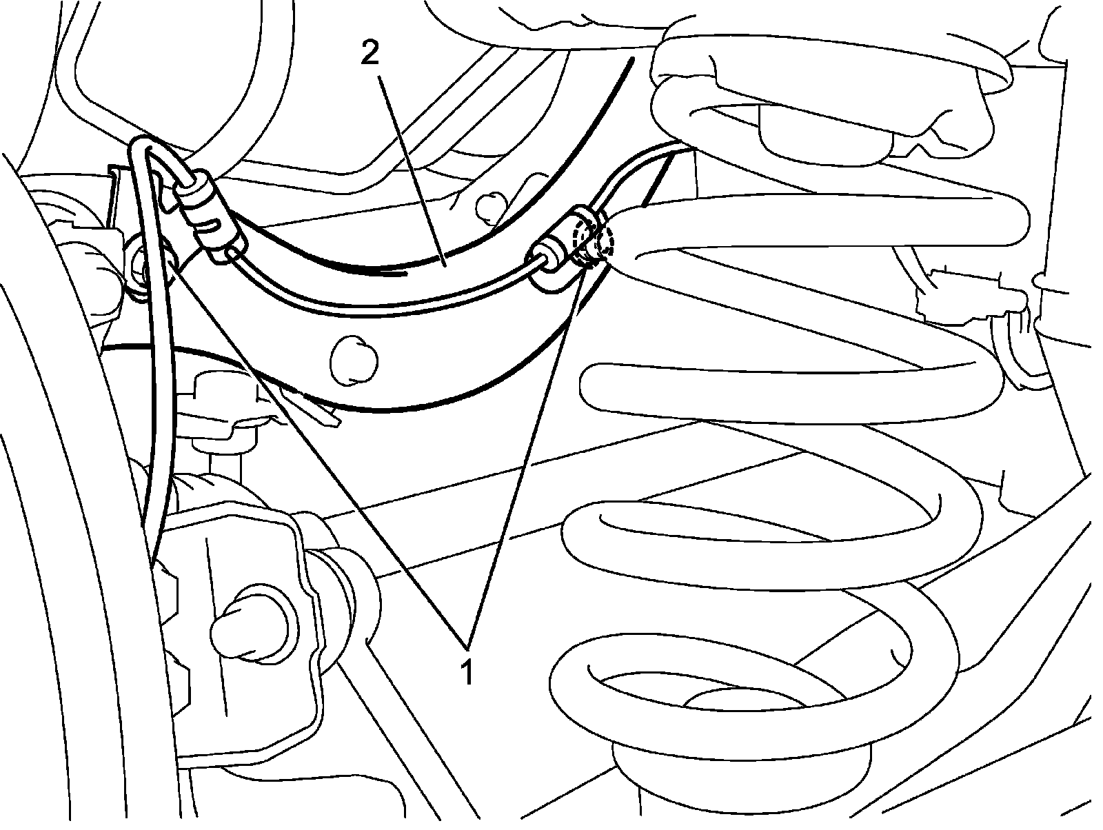 5) Remove wheel speed sensor from upper arm (2).