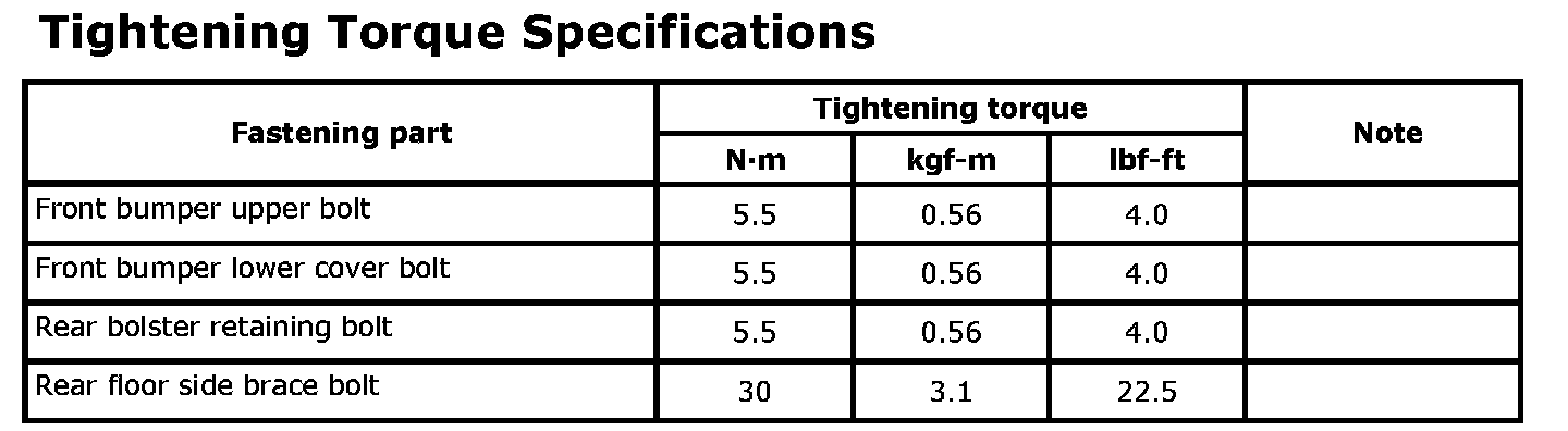 Tightening Torque SpecificationsTightening Torque Specifications:
