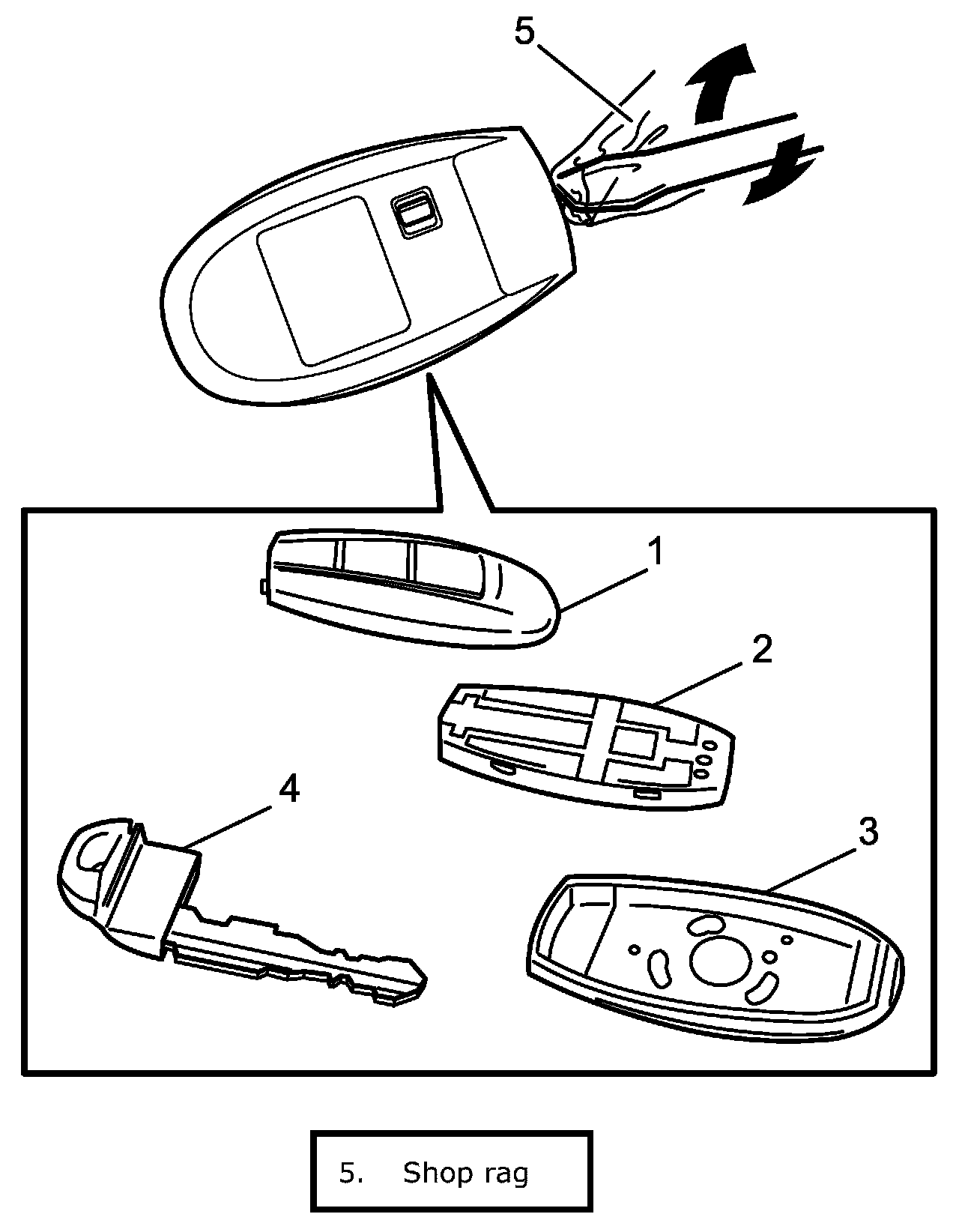 Replacement of Remote Controller Battery1. Remove emergency key (4).