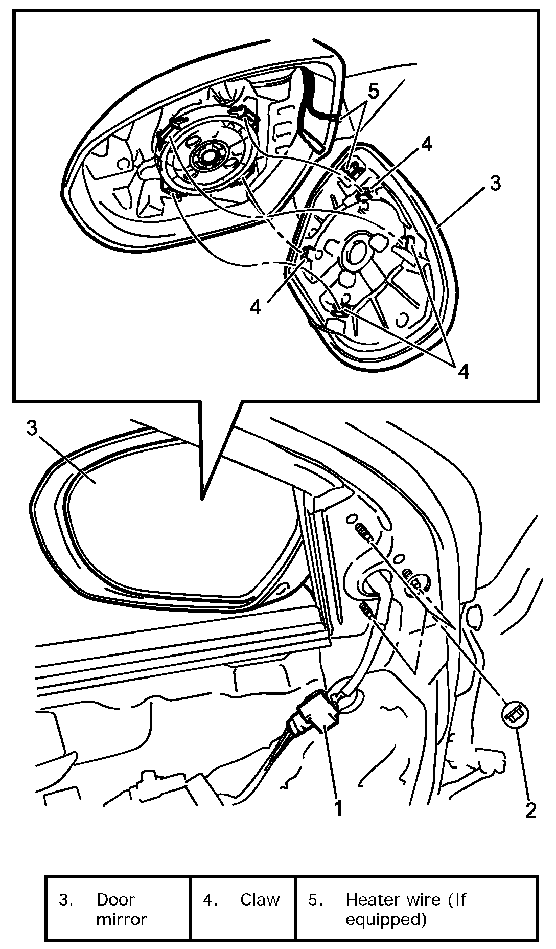 3. Remove door mirror nuts (2) and remove door mirror (3).