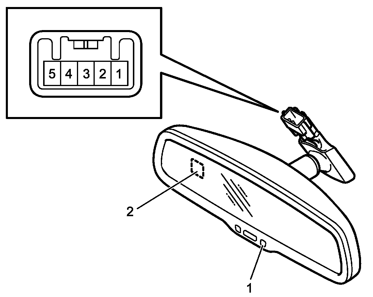 Rear View Mirror (With Auto Dimming) Inspection1. Connect positive and negative battery terminals to terminals "4" and "1" of rear view mirror connector respectively.