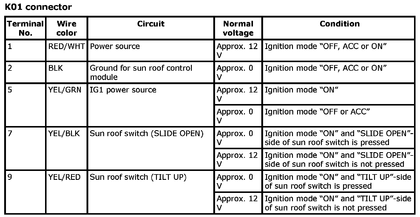 Inspection Of Sun Roof Motor And CircuitVoltage Check