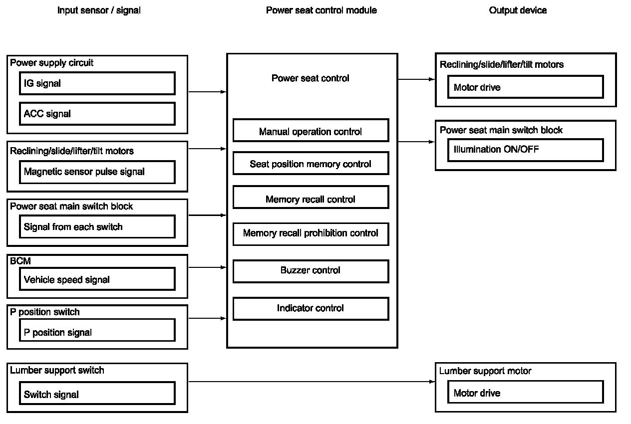 Power Seat Control System Input / Output Block Diagram (If Equipped)