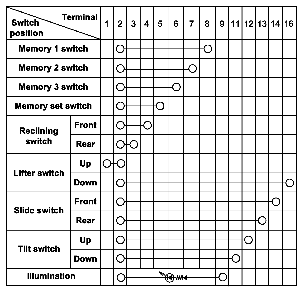 Power seat sub switch continuity