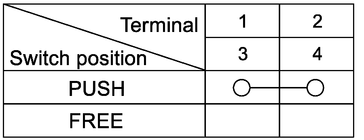 3. Check request switch for continuity between terminals at each switch position. If check result is not as specified, replace request switch.