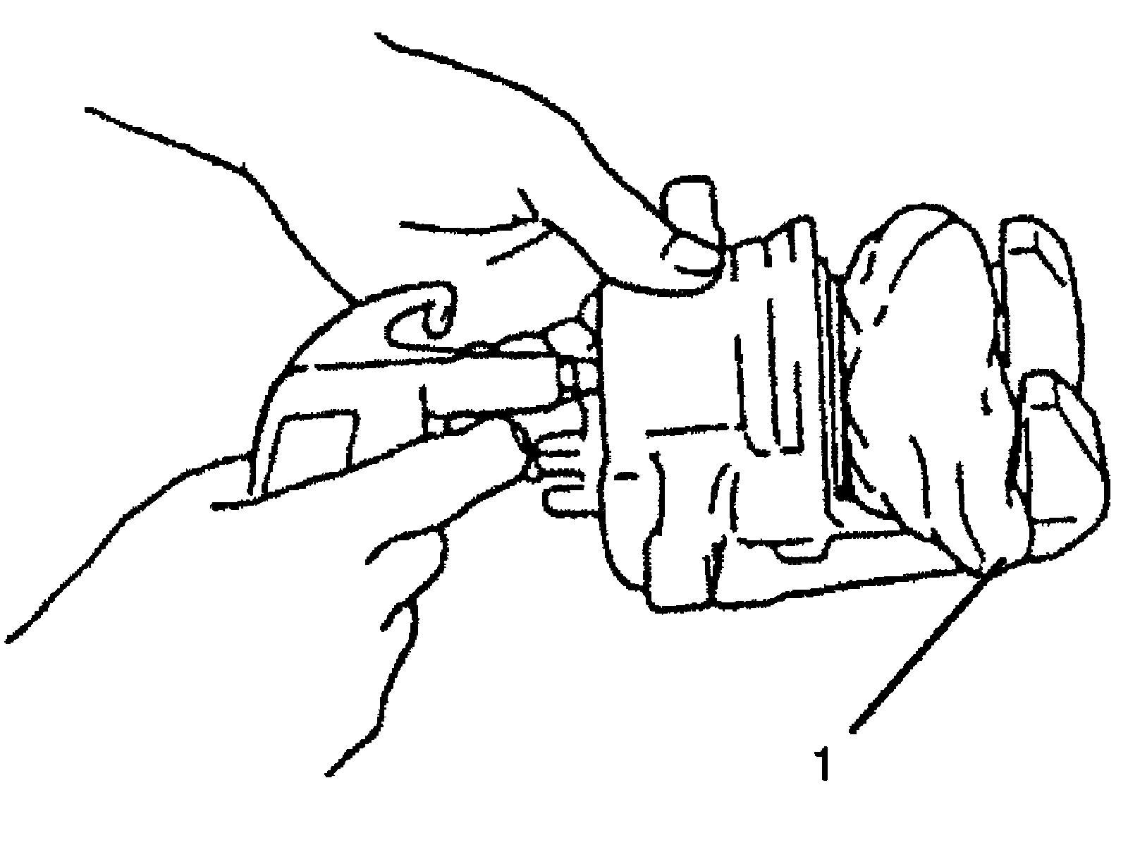 b) Apply grease to inner side of new pin boots (1).