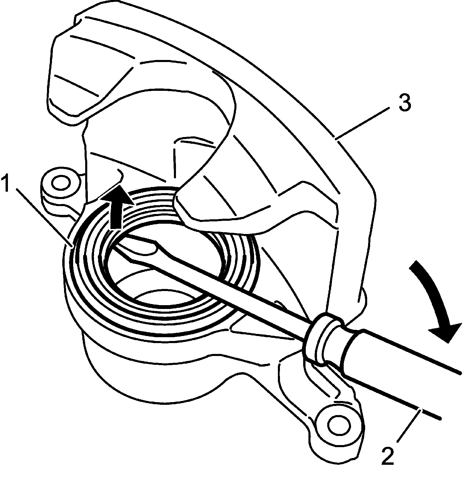 ^ Push out brake piston slowly with appropriate air pressure to prevent piston from jumping out.