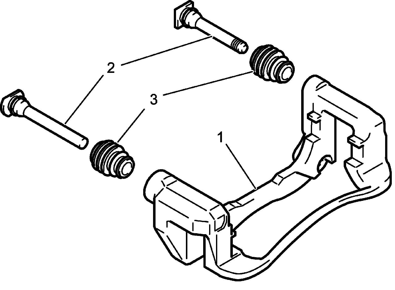 Remove slide pins (2) and pin boots (3) from front brake caliper carrier (1).