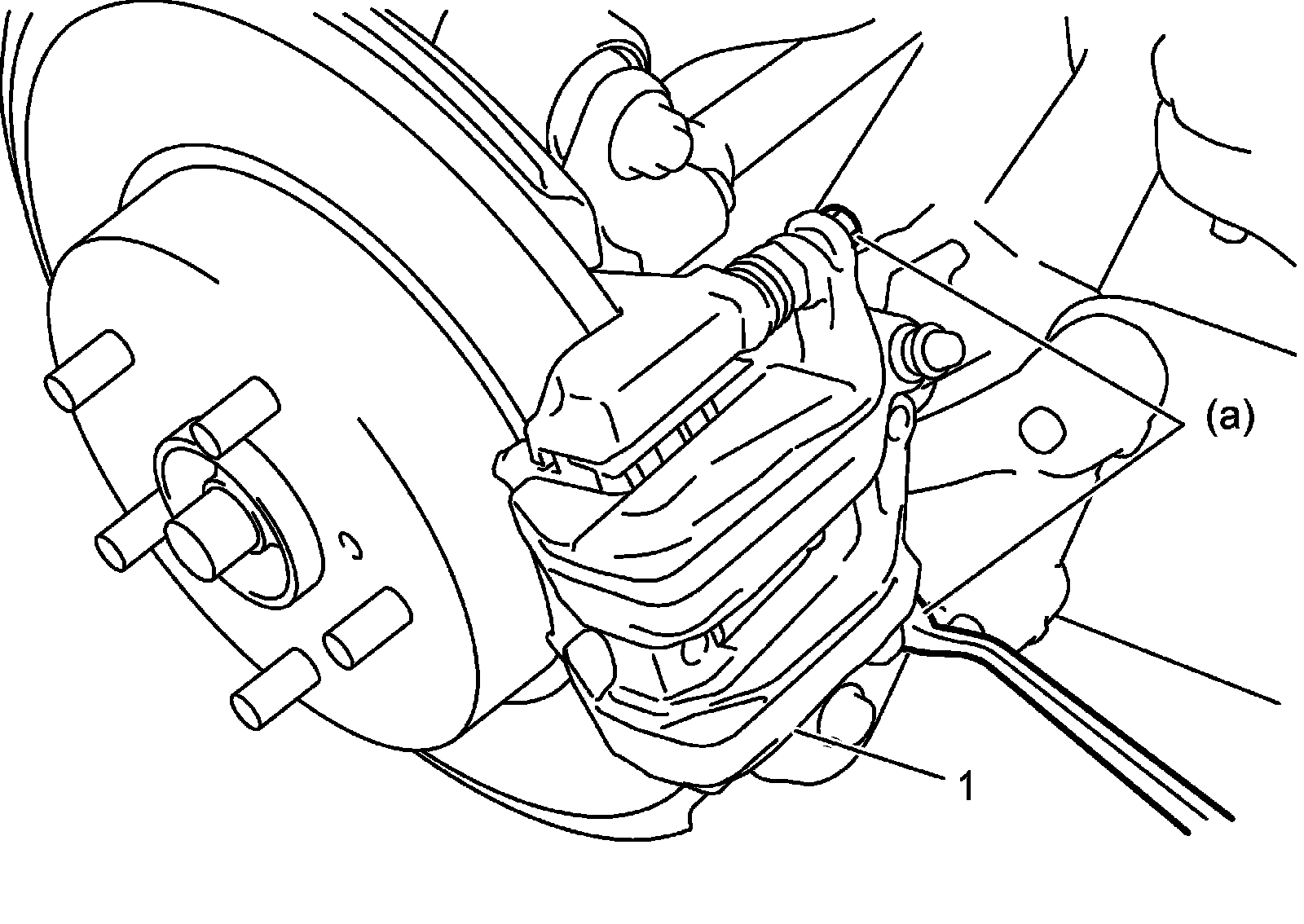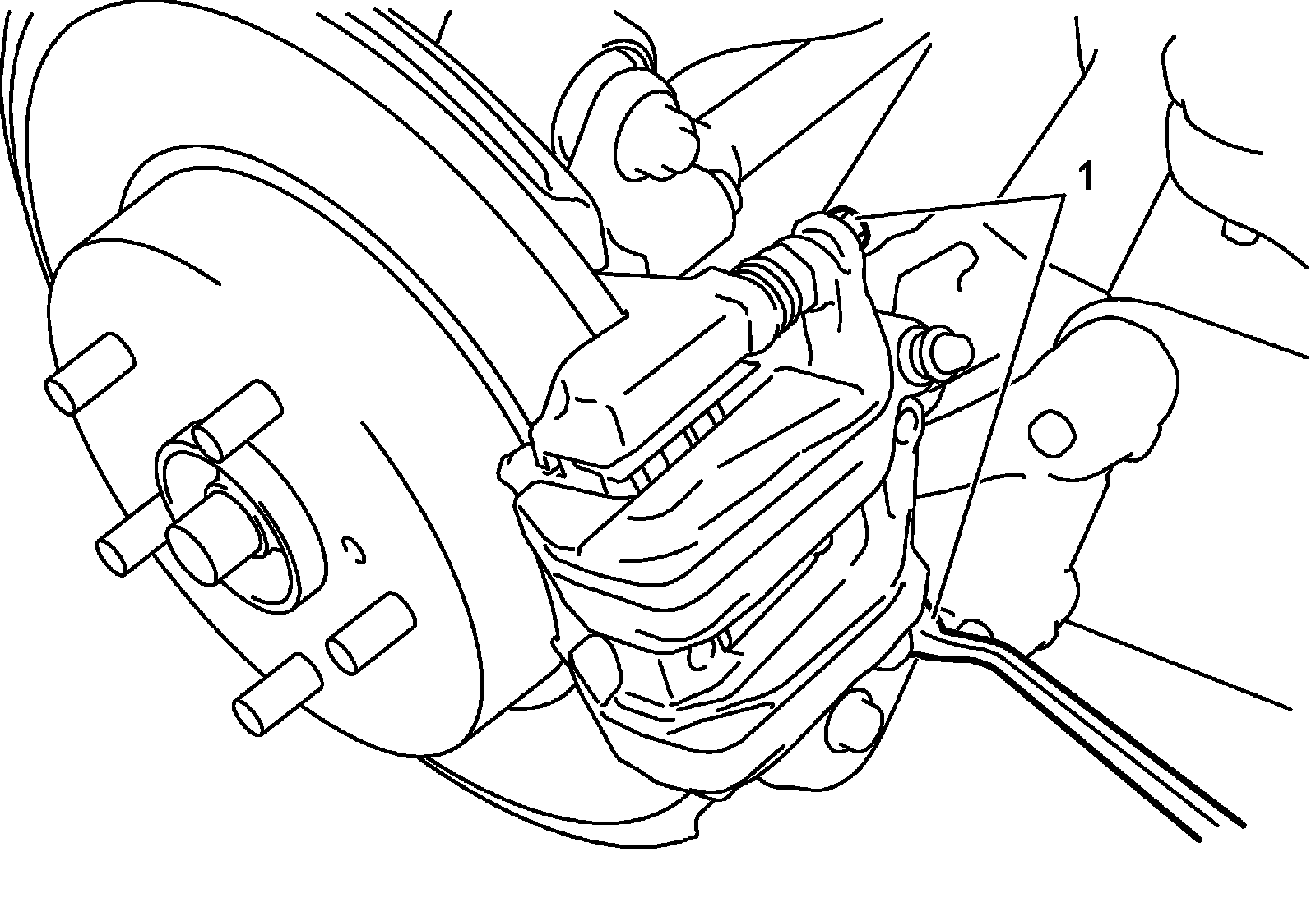 4) Install caliper (1) to rear brake caliper carrier and tighten rear brake caliper pin bolt to specified torque.