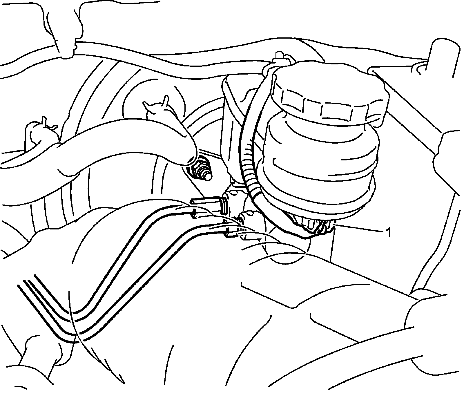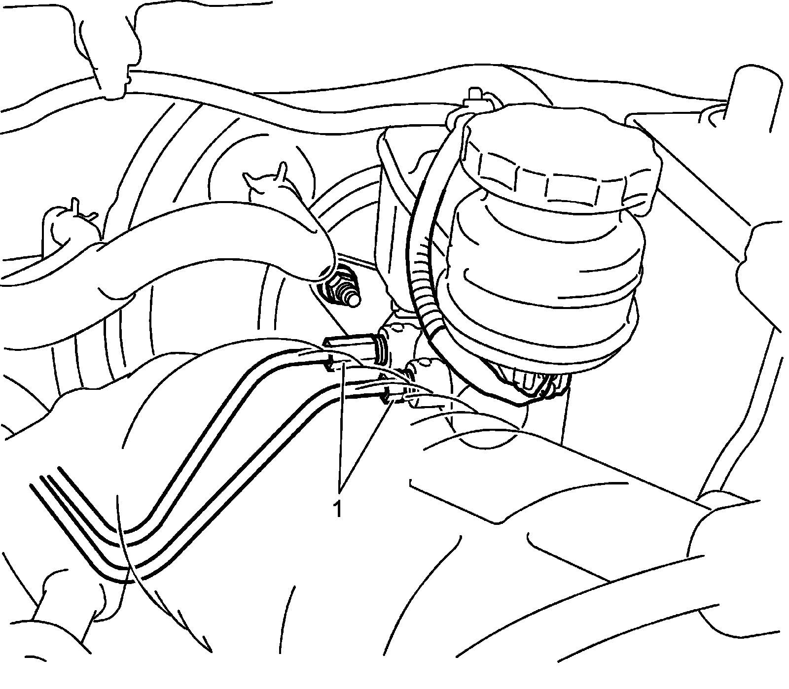 7) Remove brake master cylinder fixing nuts (1).