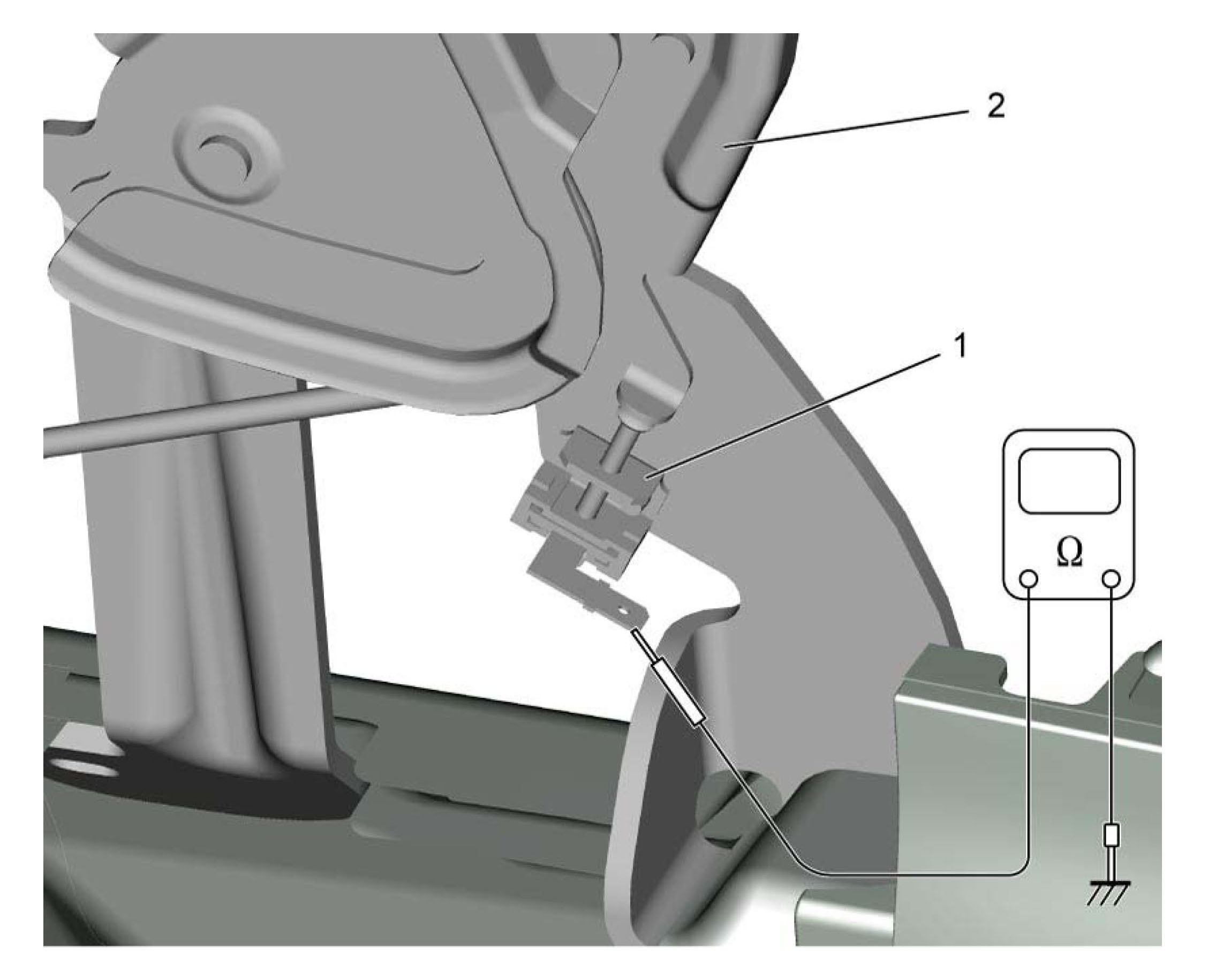 3) Check parking brake switch for continuity between parking brake switch terminal and vehicle body. If faulty, replace parking brake switch.