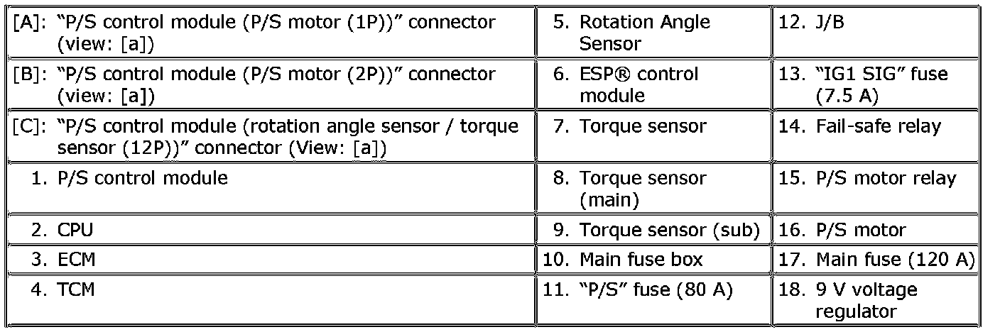 EPS System Wiring Circuit DiagramTerminal Arrangement of P/S Control Module Coupler (Viewed from Harness Side)