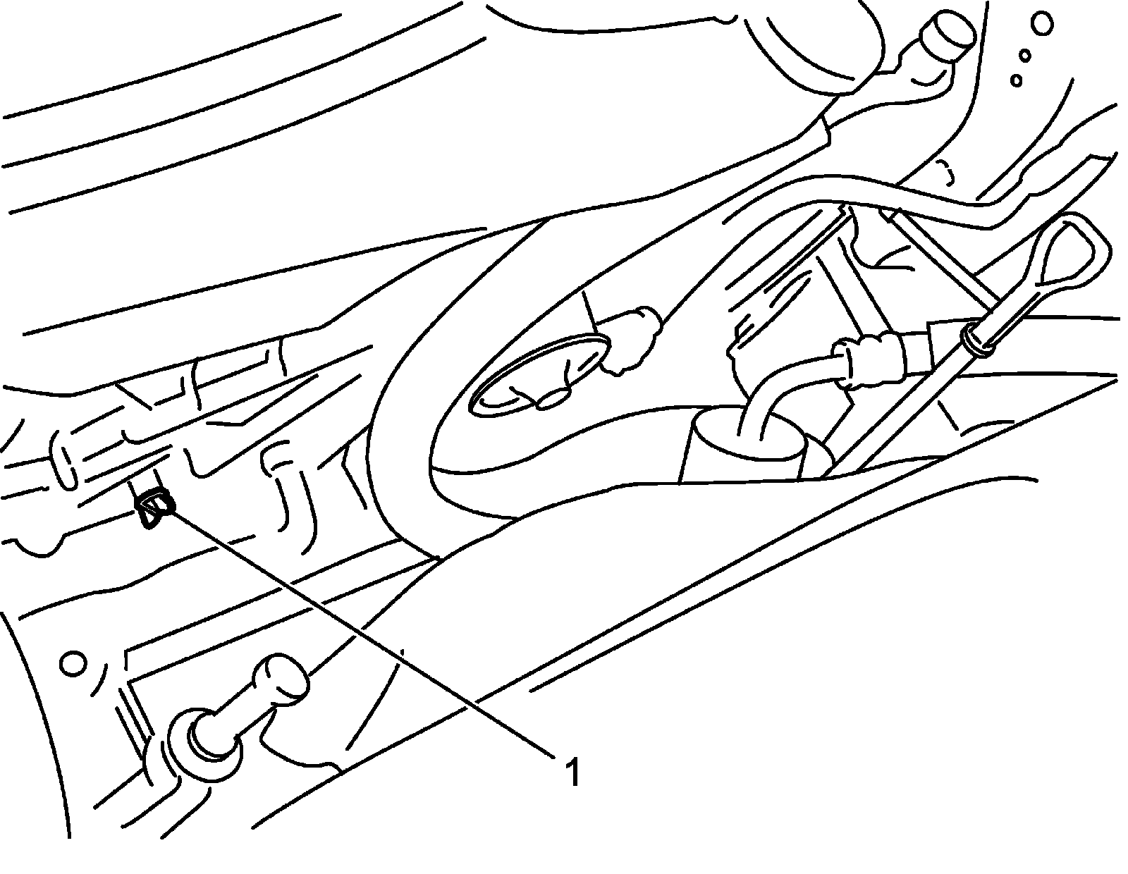 3) Drain coolant loosening radiator drain plug (1).