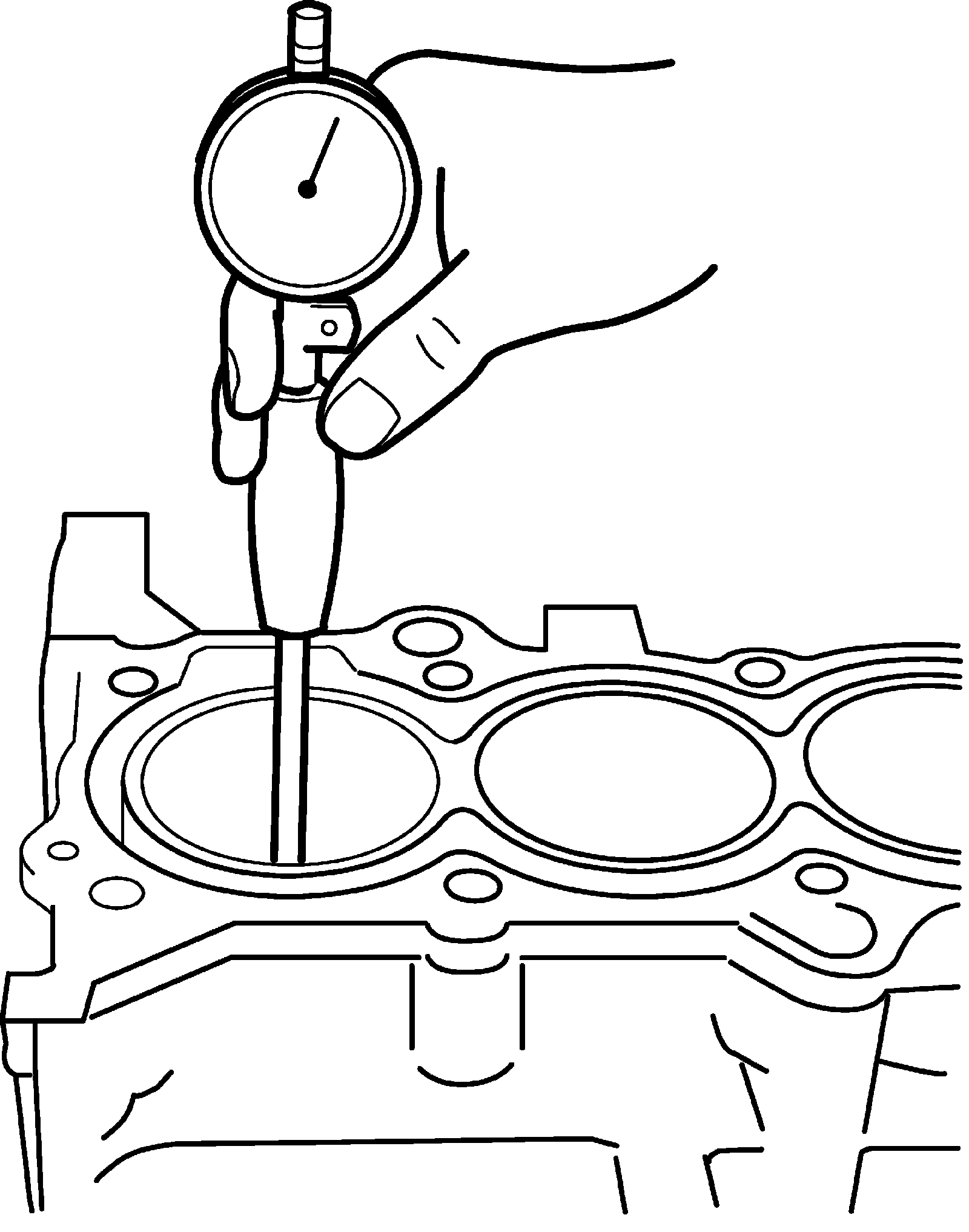Use cylinder gauge to measure cylinder bore in thrust and axial direction. Replace cylinder block if any of the following conditions are discovered: