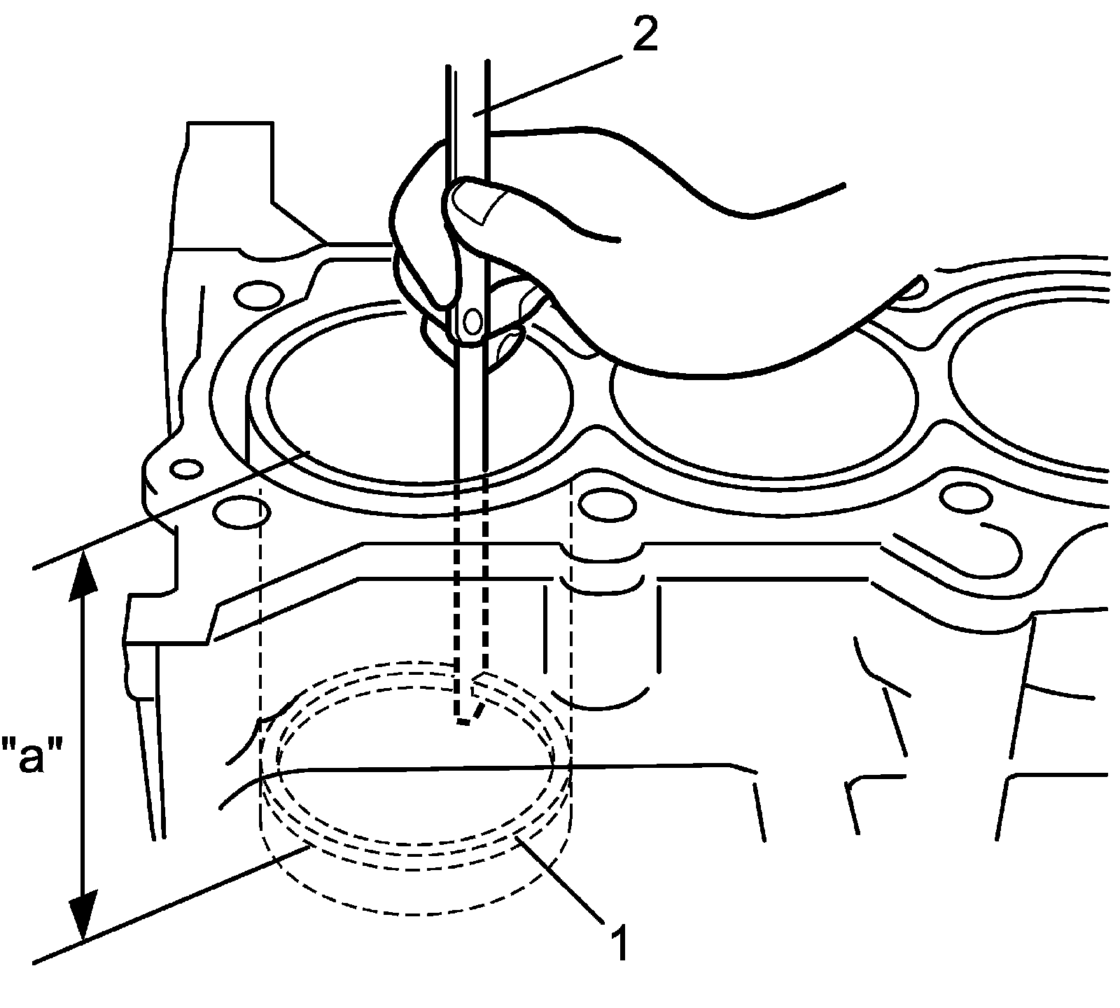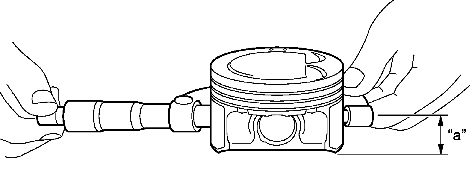As indicated in figure, piston diameter should be measured at specified position "a" 11.4 mm (0.448 in) from piston skirt end in the direction perpendicular to piston pin.