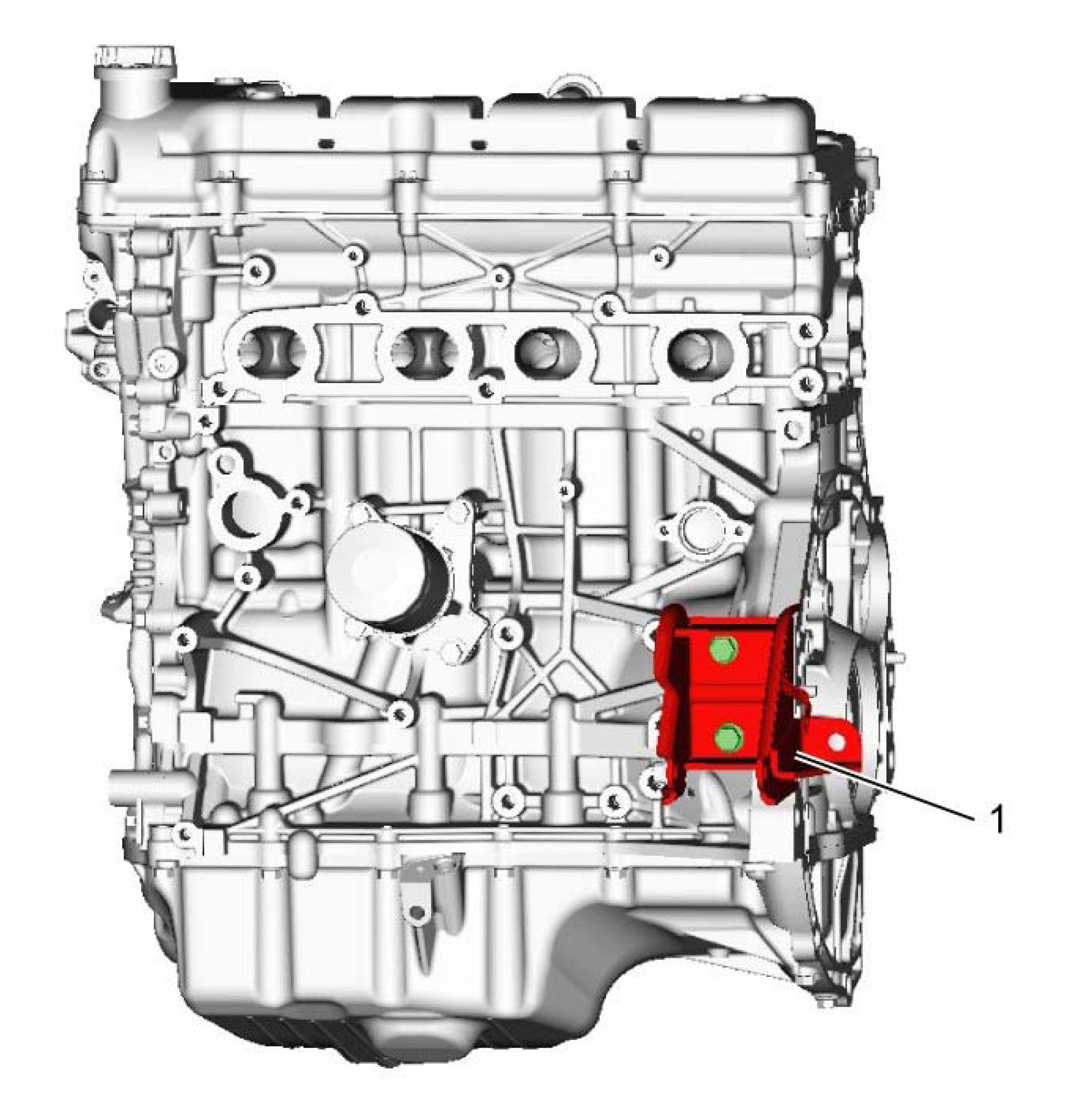 21) Install engine front mounting bracket (1).