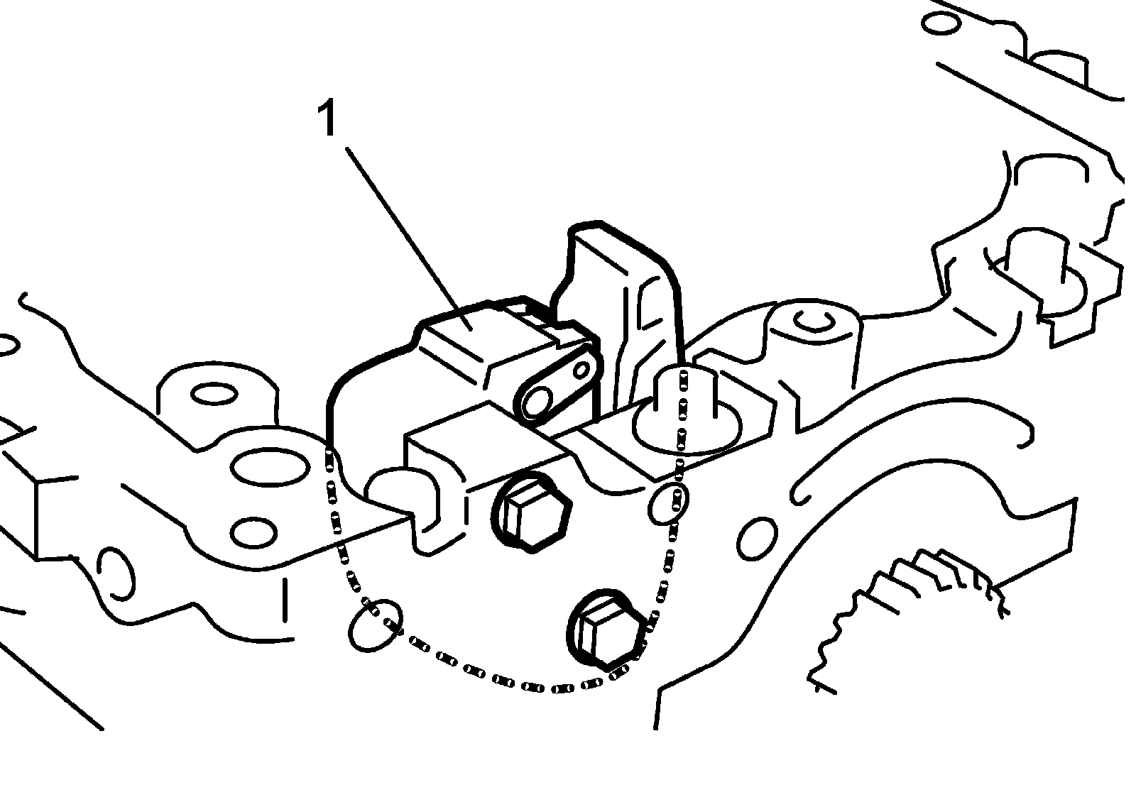 7) Remove oil pump chain adjuster (1) from lower crankcase.