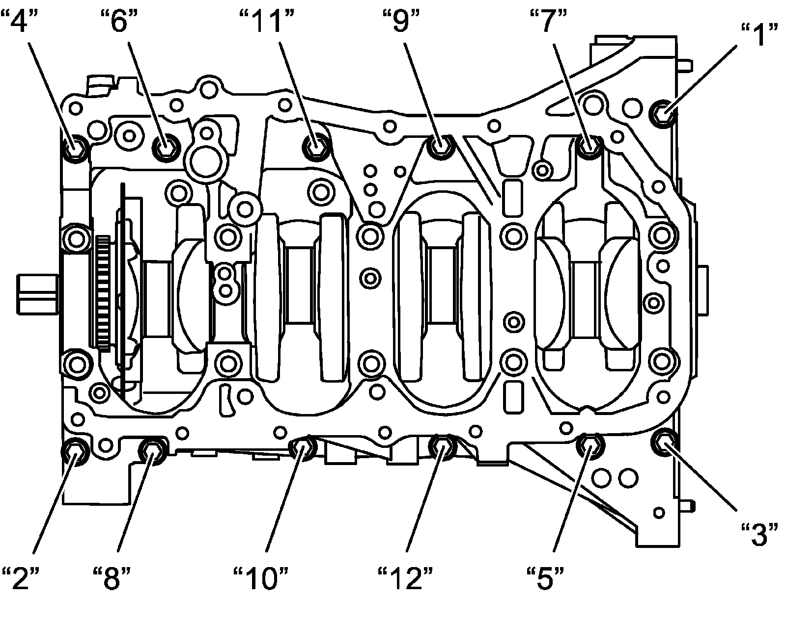 Use 12-point socket wrench for crankcase bolt No.1s.