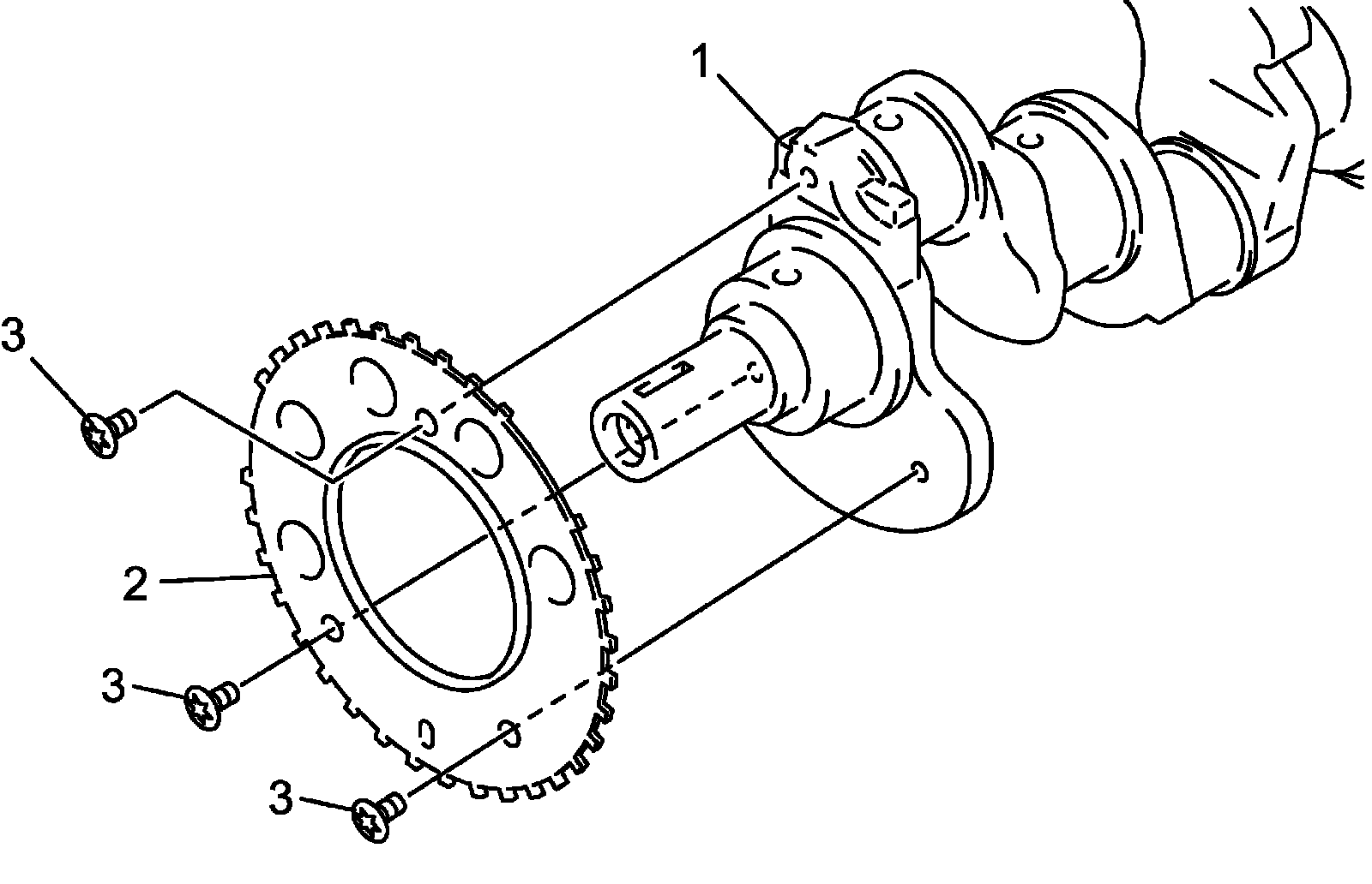 12) Remove sensor plate (2) from crankshaft (1), if necessary.